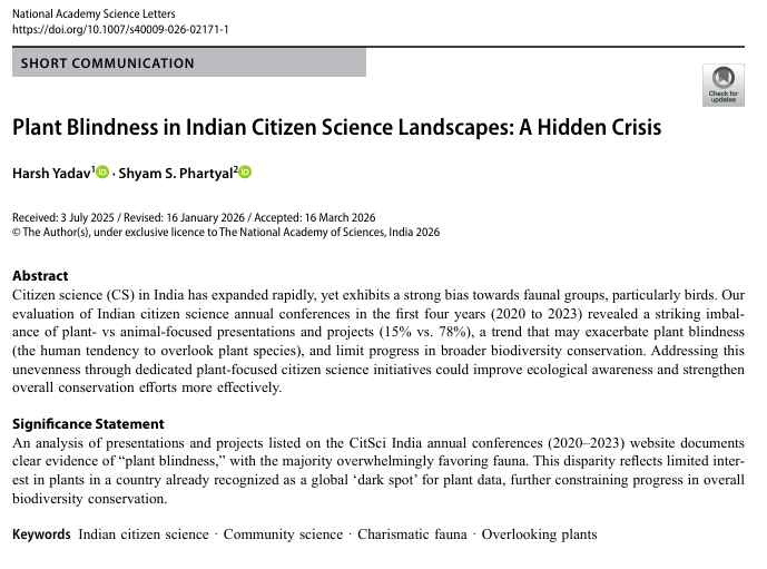In India, #CitizenScience is booming—but 78% of projects of #CitSciIndia primarily focus on fauna, while only 15% focus solely on flora.